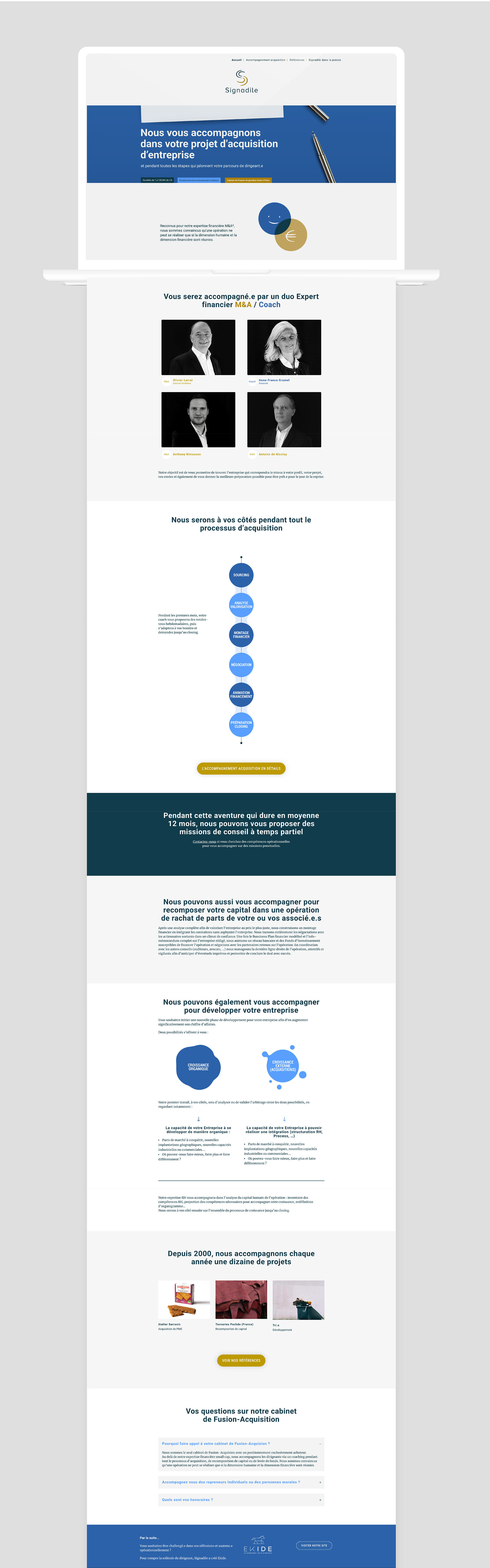 Création du logo et du site internet du cabinet de Fusion-Acquisition de PME Signadile. Basé à Paris, Signadile accompagne les dirigeant·es dans leur projet de reprise d’entreprise.